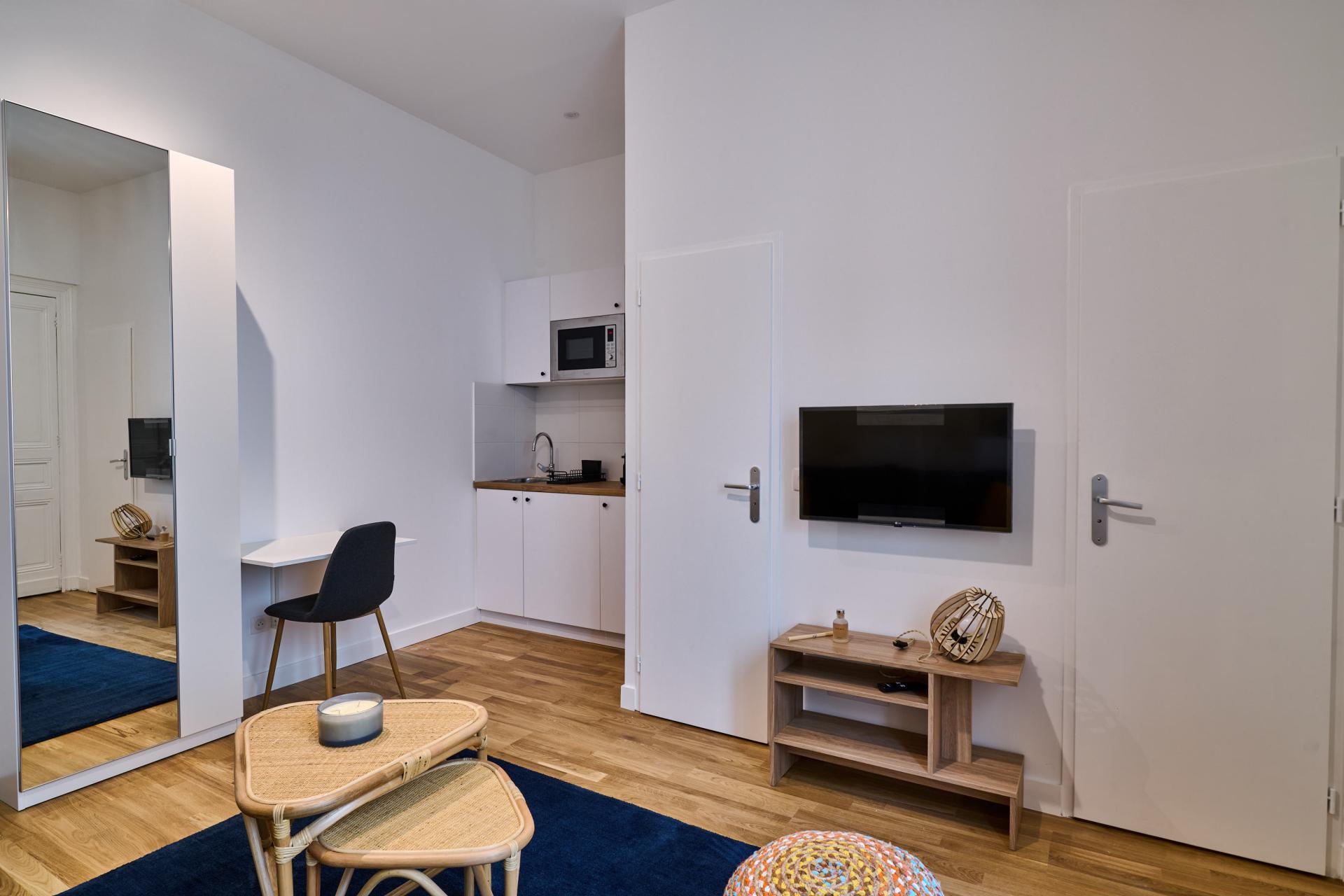 RenoV a réalisé la rénovation complète d’un studio de 18m² cours d’Albret à Bordeaux, transformant cet espace exigu en un logement optimisé et moderne.